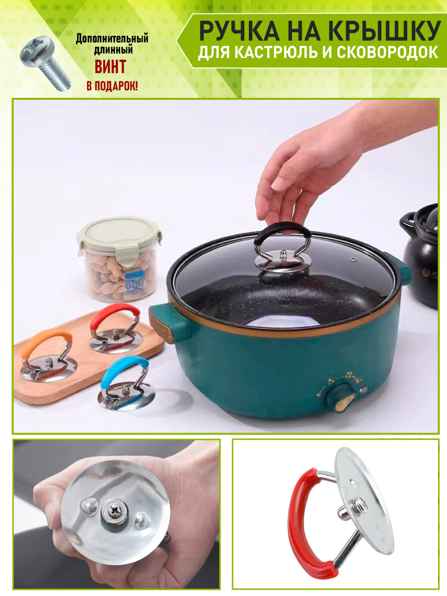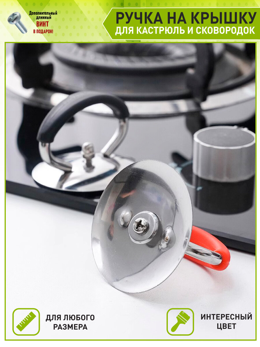 OlLena / Сменная ручка из нержавеющей стали для крышек сковородок и кастрюль, красная, нержавеющая сталь интересное: