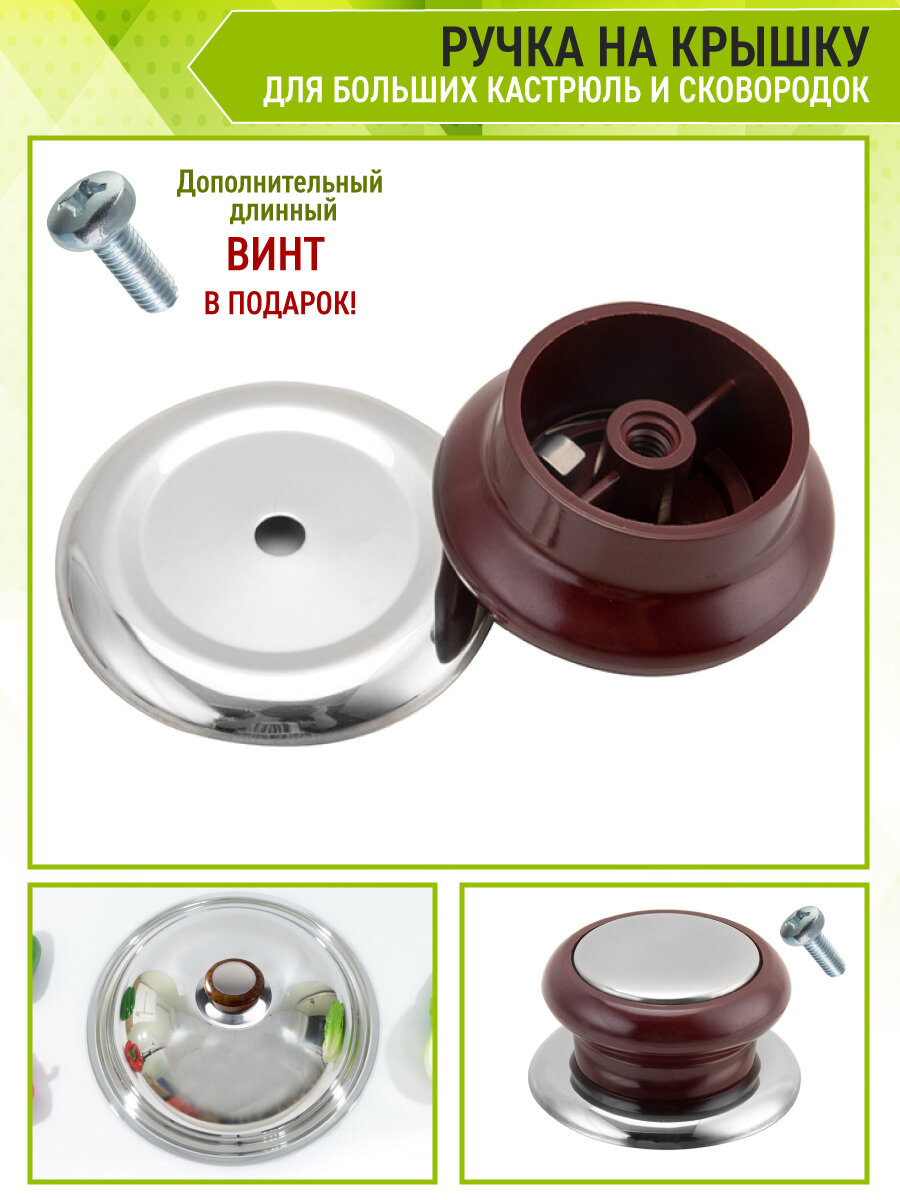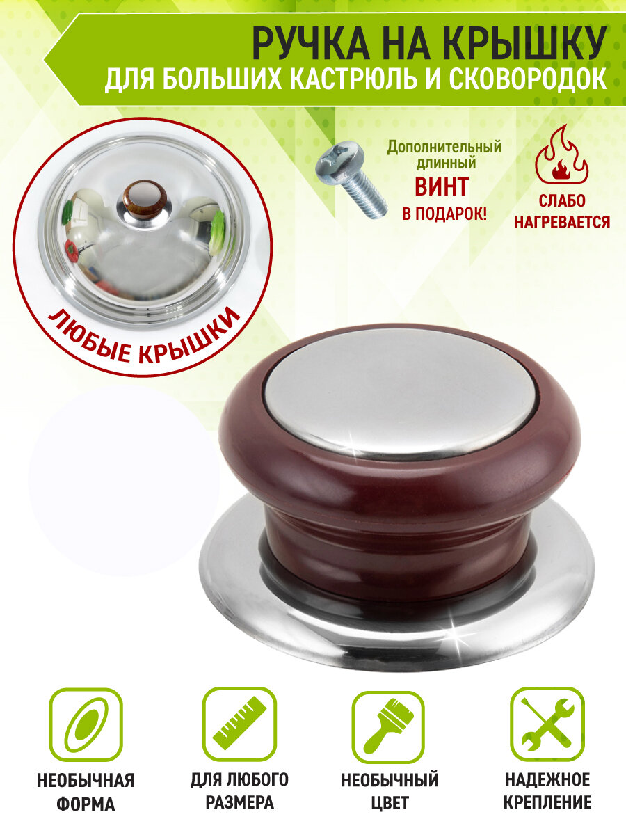 OlLena / Ручка для крышек сковородок и кастрюль, бордово-коричневая интересное: