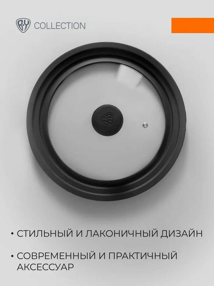Крышка для сковороды 22 см BY COLLECTION, стеклянная крышка для кастрюли, термостойкое стекло, силиконовый ободок