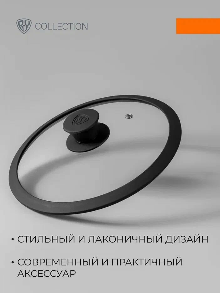 Крышка для сковороды и кастрюли BY COLLECTION, 24 см, термостойкое стекло, силиконовый ободок