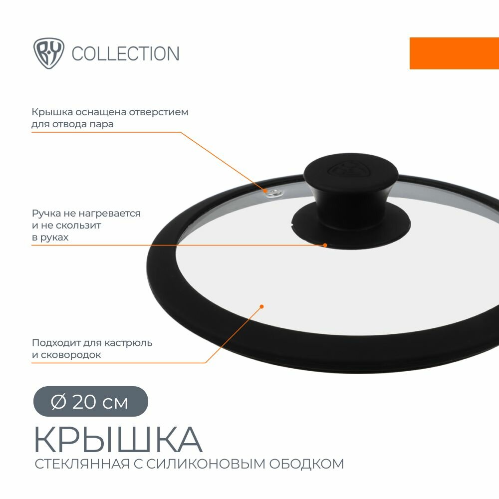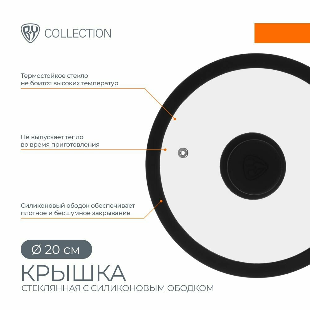 Купить Крышка для сковороды и кастрюли BY COLLECTION, 20 см, термостойкое стекло, силиконовый ободок