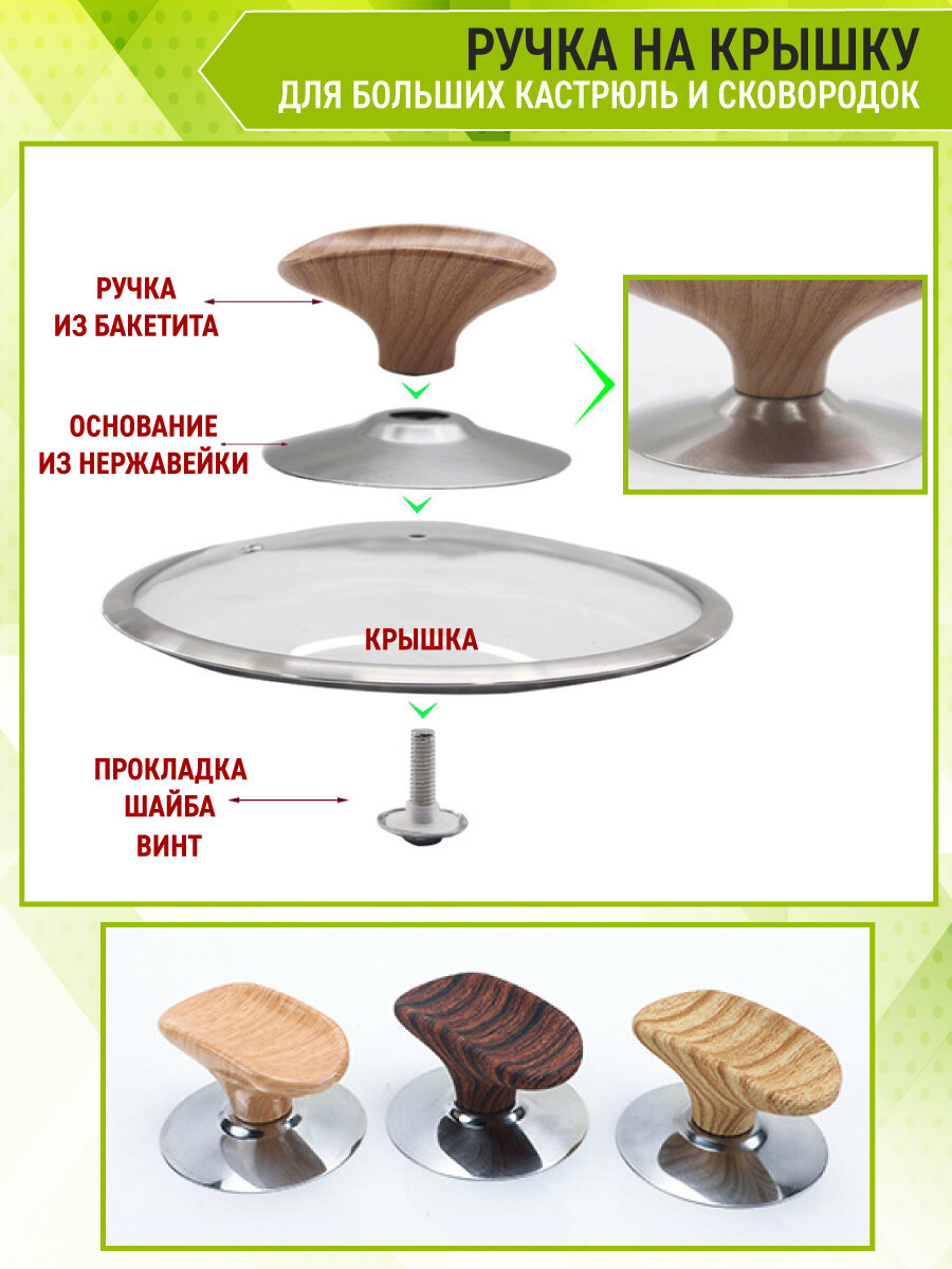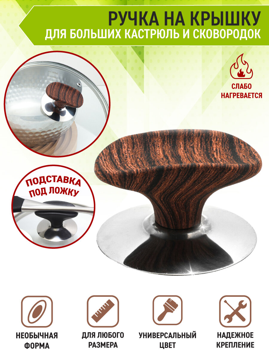 OlLena / Сменная бакелитовая ручка для крышек сковородок и кастрюль, подставка для ложки, коричневая интересное: