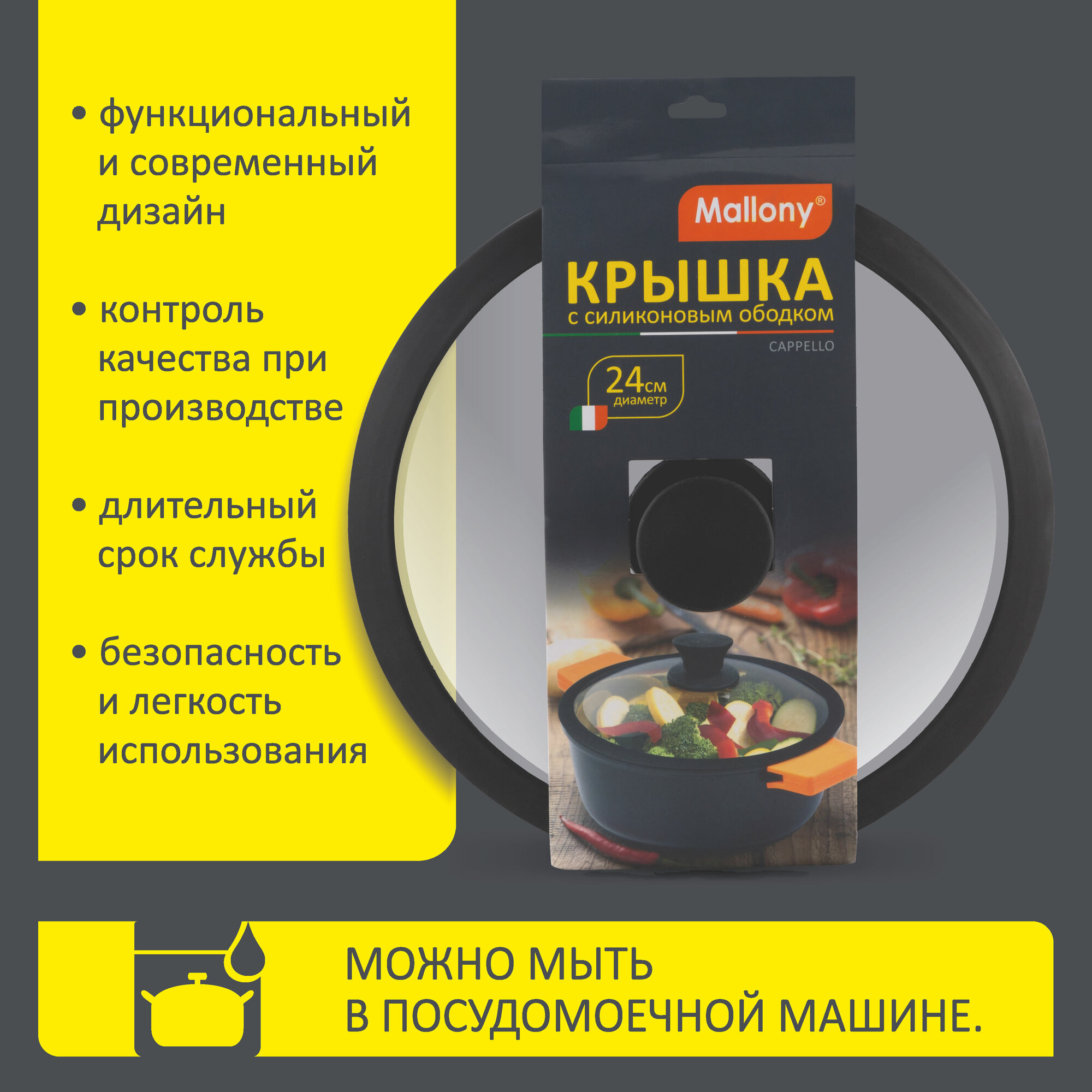 Купить Крышка стеклянная с силиконовым ободком Mallony Cappello, тип G - куполообразная, диаметр 24 см