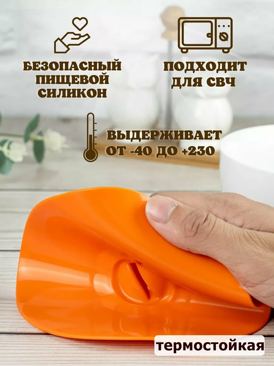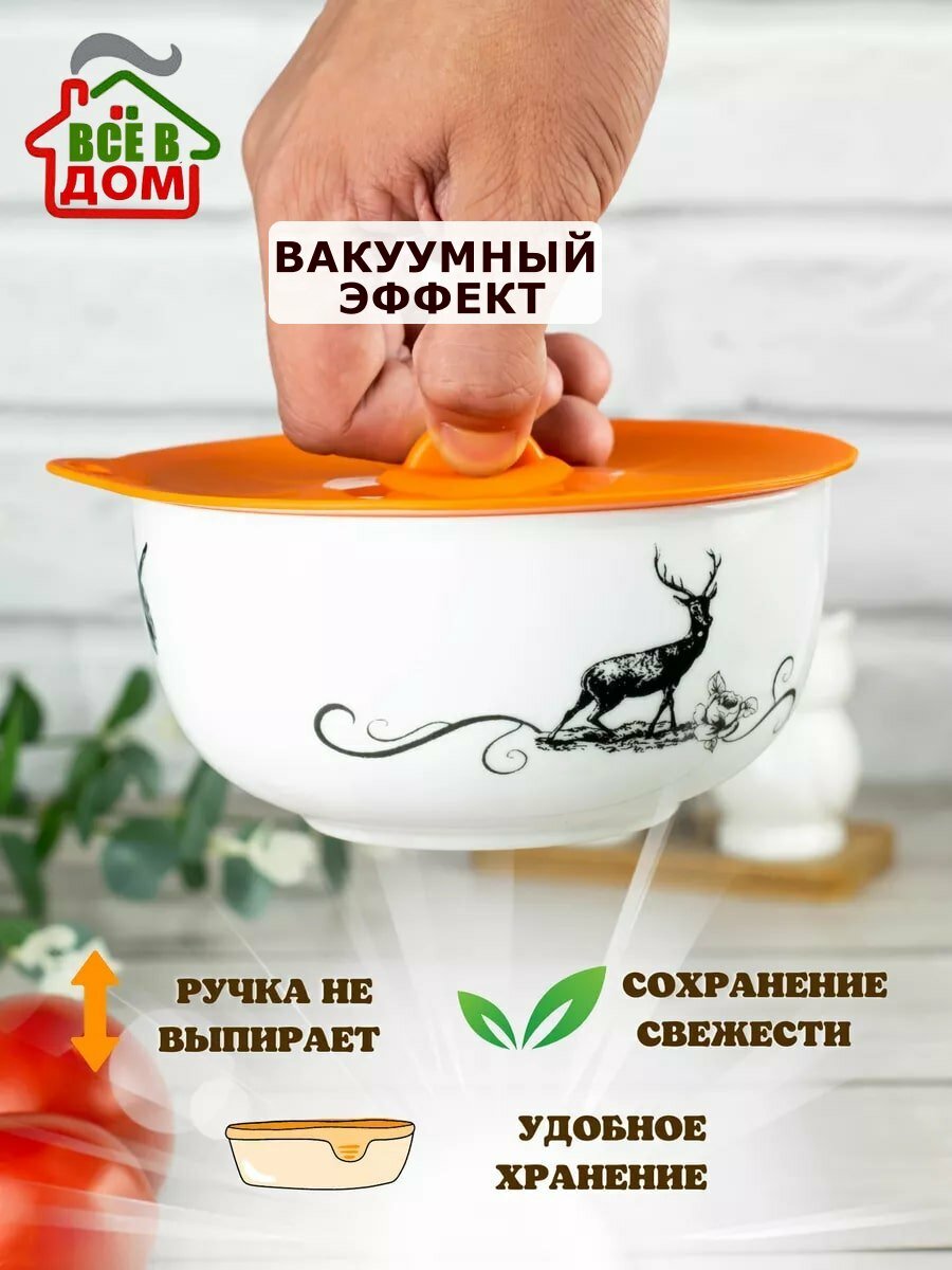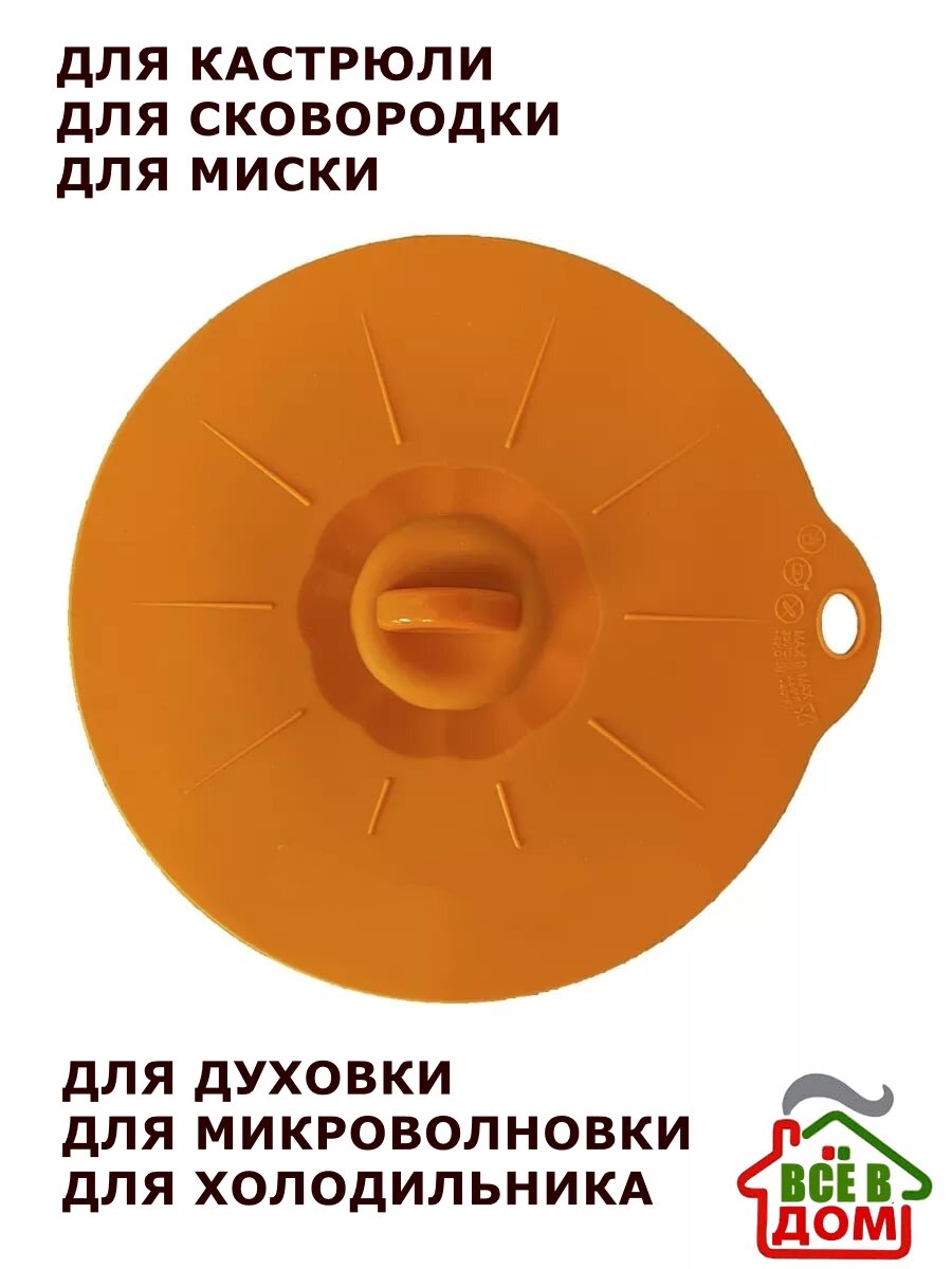 Силиконовая крышка присоска для посуды, термостойкая, вакуумная, диаметр 23,5 см, оранжевая интересное: