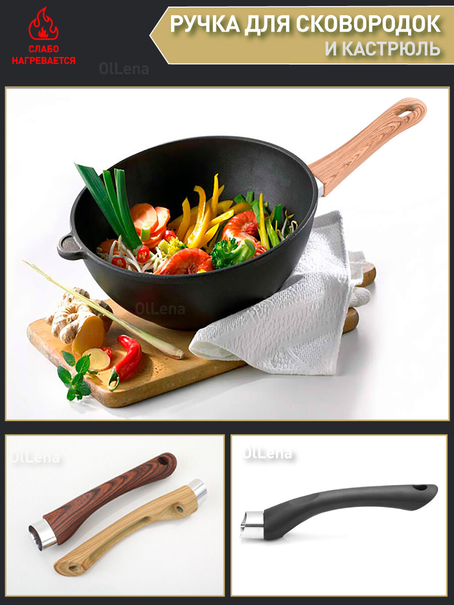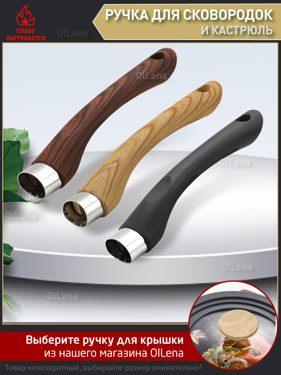 OlLena / Сменная ручка для сковородки и ковшика, бакелитовая, темное дерево