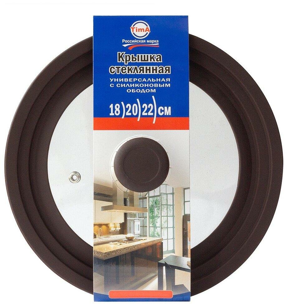Купить Крышка TimA стеклянная с силиконовым ободком на 3 размера 18-20-22см, с пароотводом, коричневая