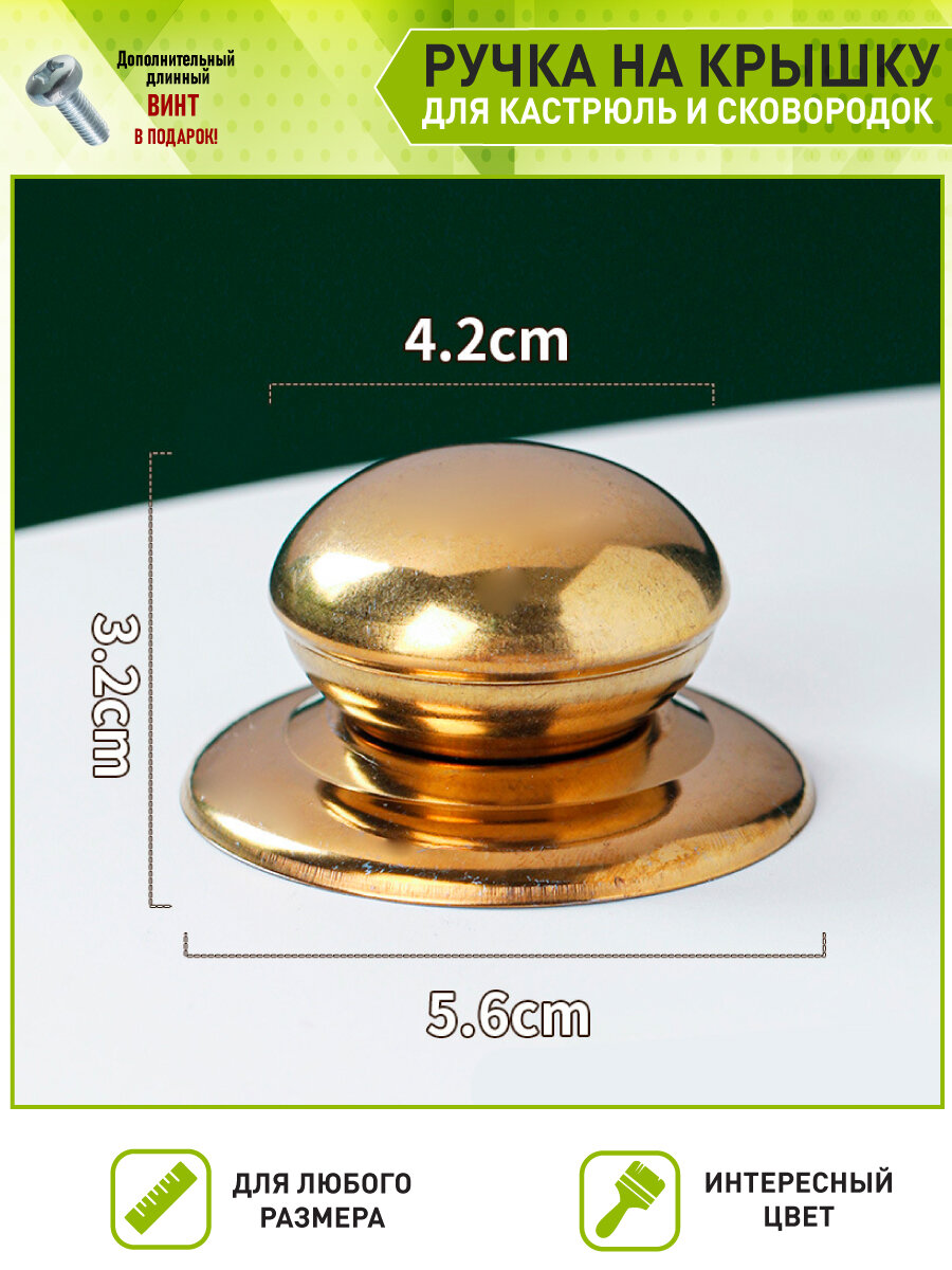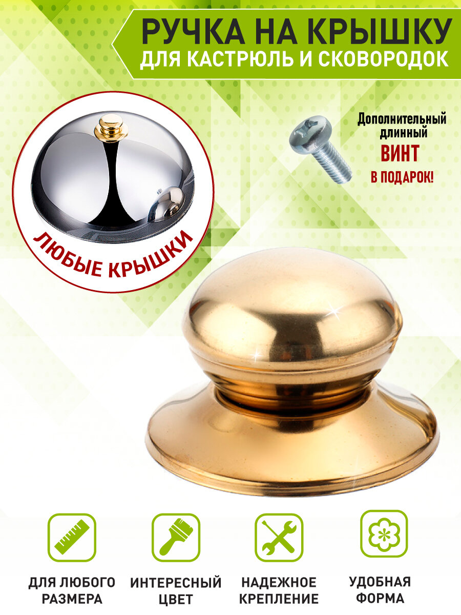 OlLena / Большая сменная ручка из нержавеющей стали для крышки кастрюли, сковороды, казана и сотейника, золотая интересное: