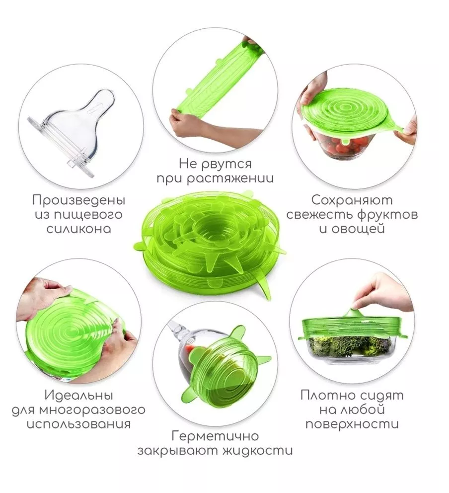 Силиконовые растягивающиеся крышки для посуды, набор 12 шт (зеленые) интересное: