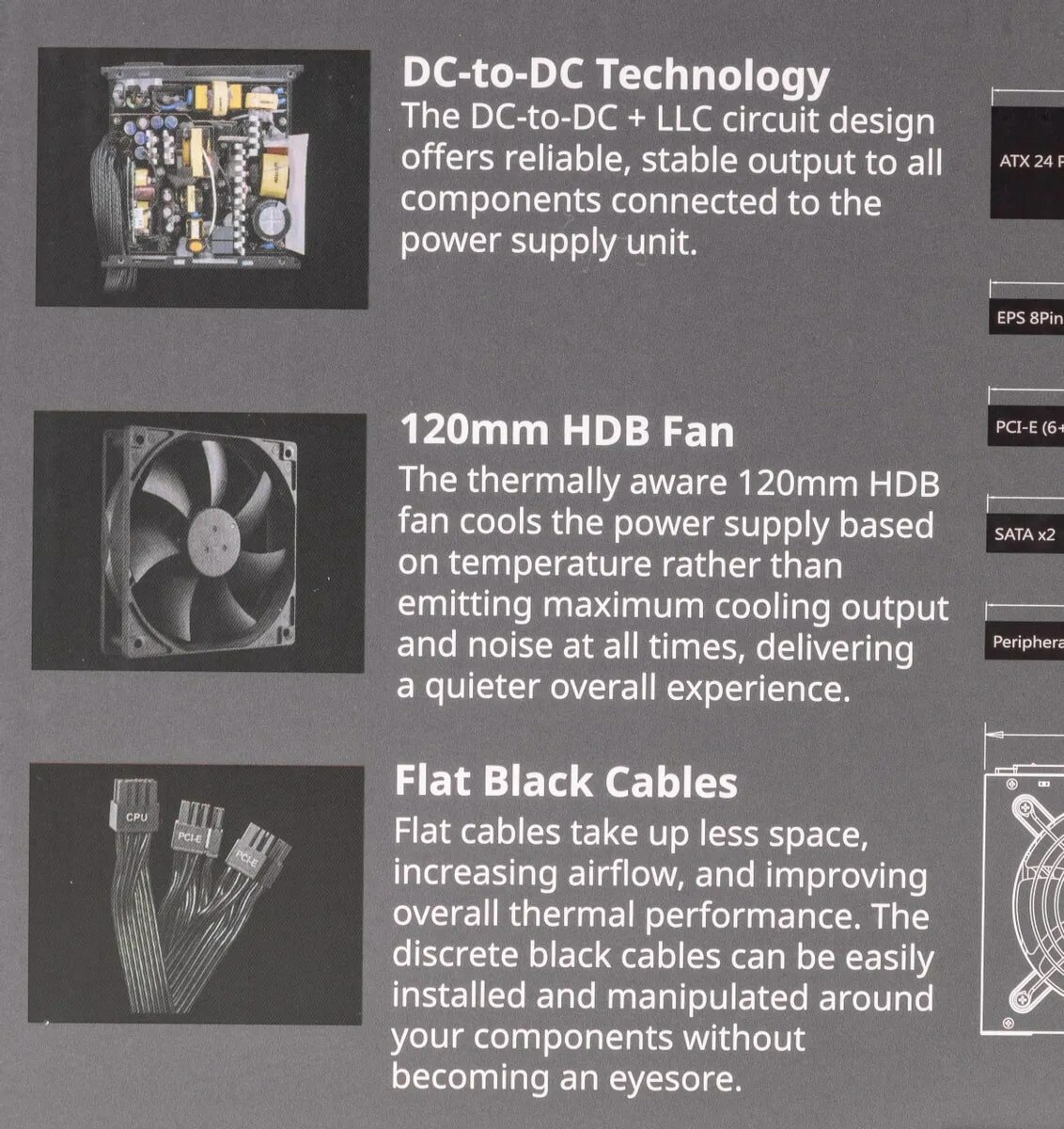 | Плюсы: | Бронзовый сертификат, черные провода, много разъемов для подключения. |