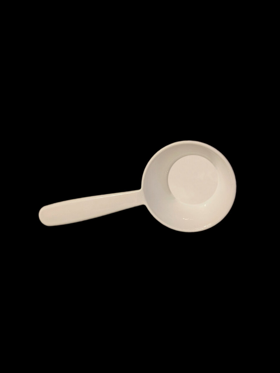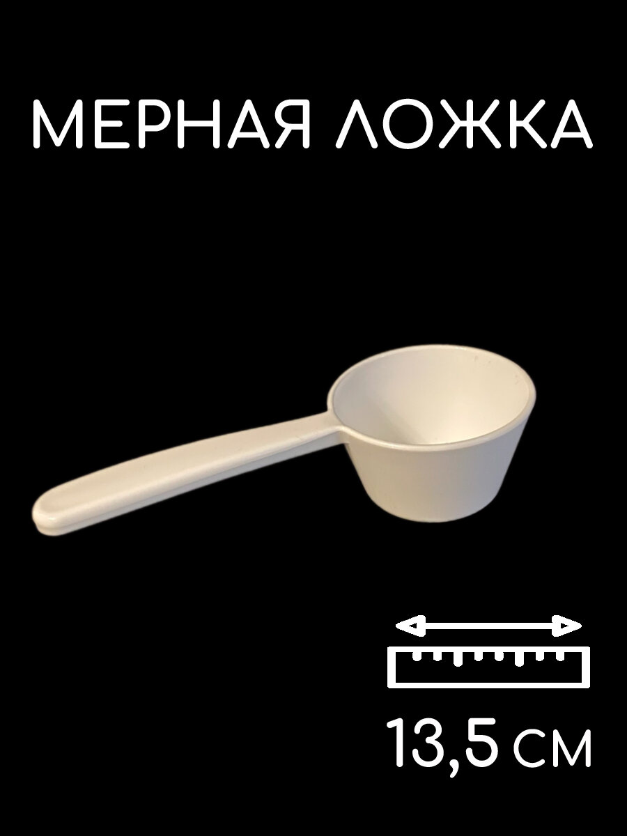 Белая пластиковая мерная ложка, объемом 50 мл для порошка и круп интересное:
