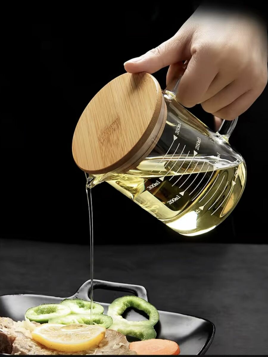 Мерный стакан для кухни 350мл, молочник с бамбуковой крышкой, кружка мерная интересное: