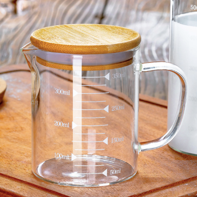 Купить Мерный стакан для кухни 350мл, молочник с бамбуковой крышкой, кружка мерная