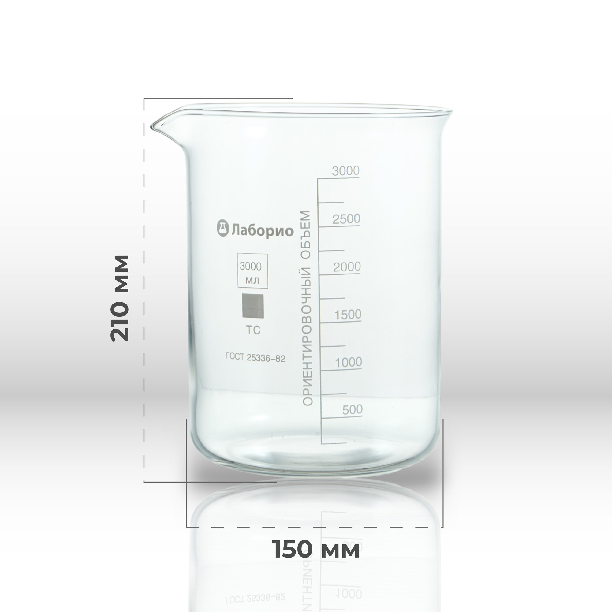 Купить Стакан лабораторный 3000 мл (тип Н, низкий с делениями и носиком, термостойкий) ТС Н-1-3000
