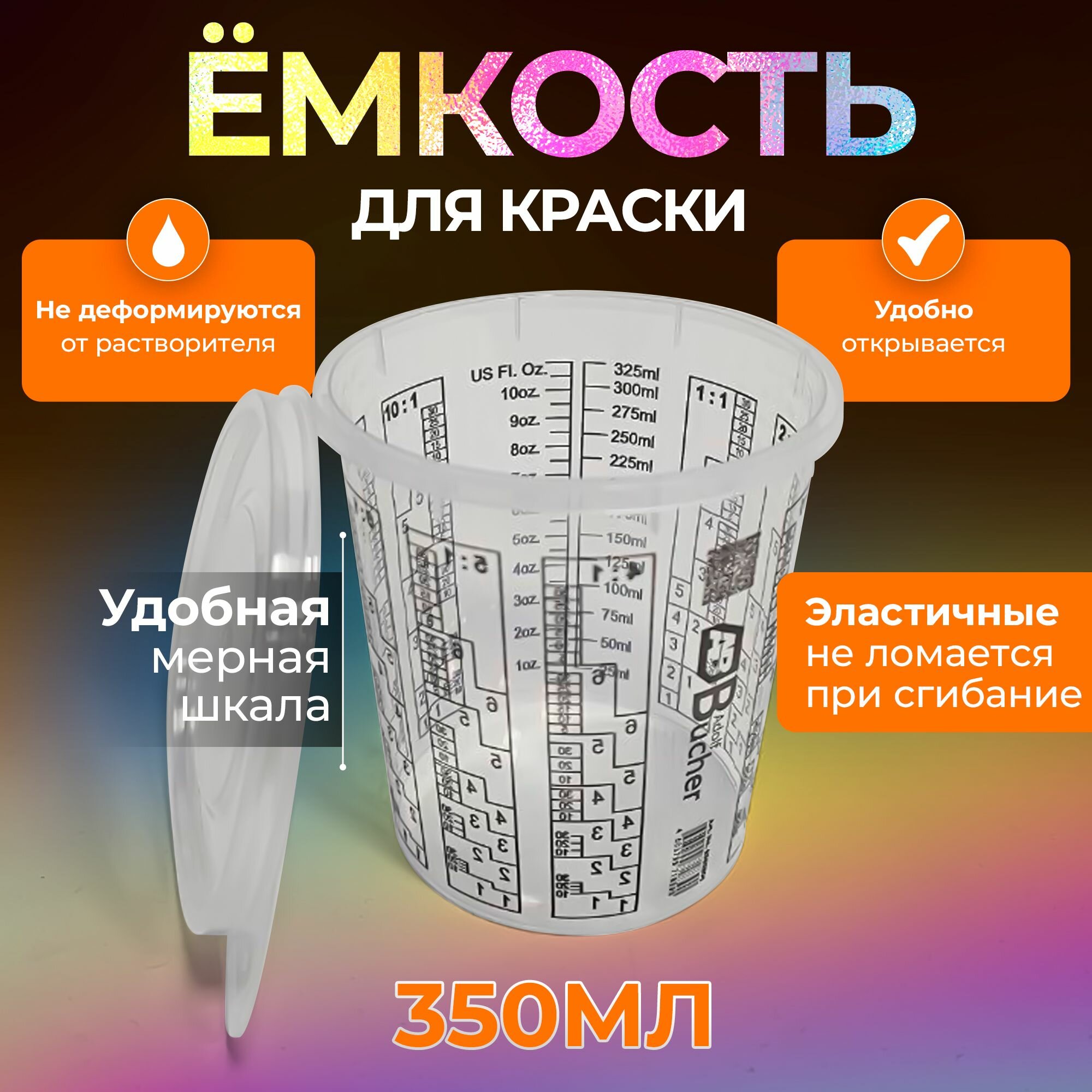 Емкость для краски 350мл. с крышкой 2 шт. интересное: