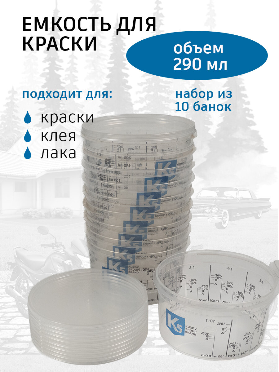 Купить Емкость для смешивания краски 290мл мерная, набор 10 шт