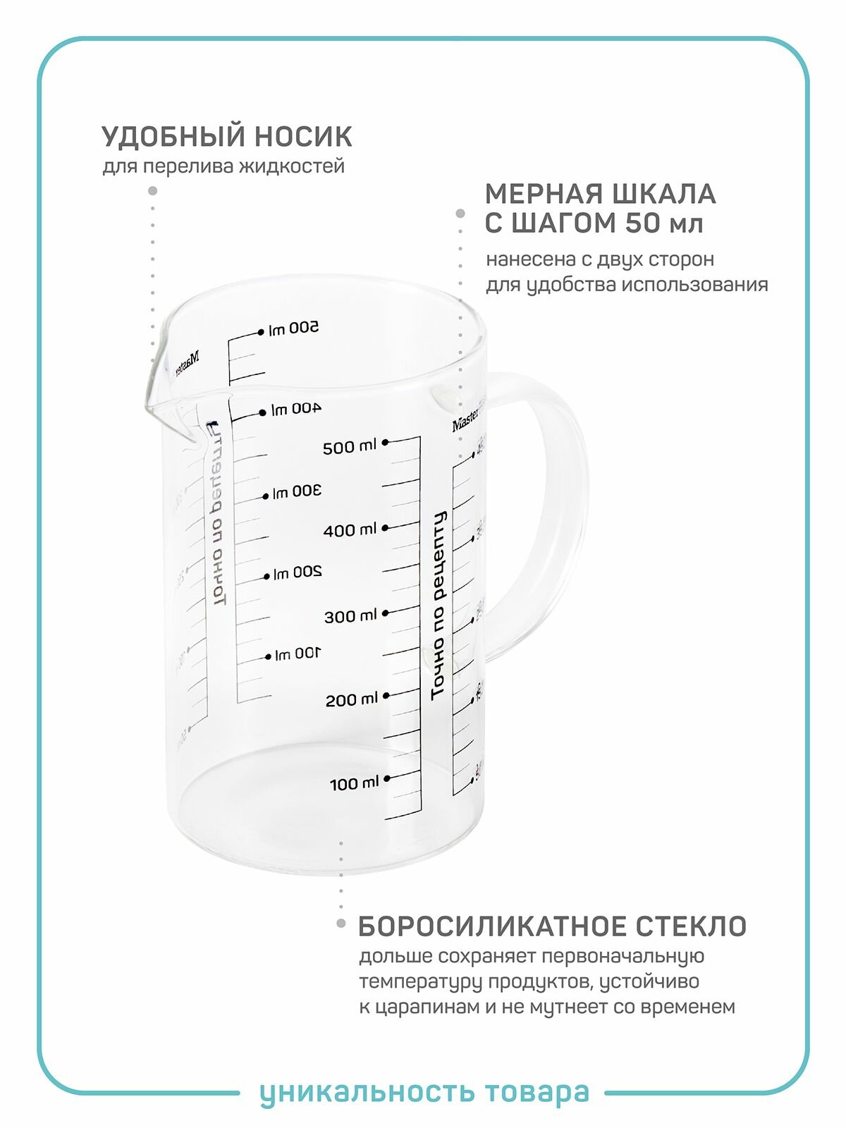 Master House Мерный стакан стеклянный Генау 500 мл с носиком интересное: