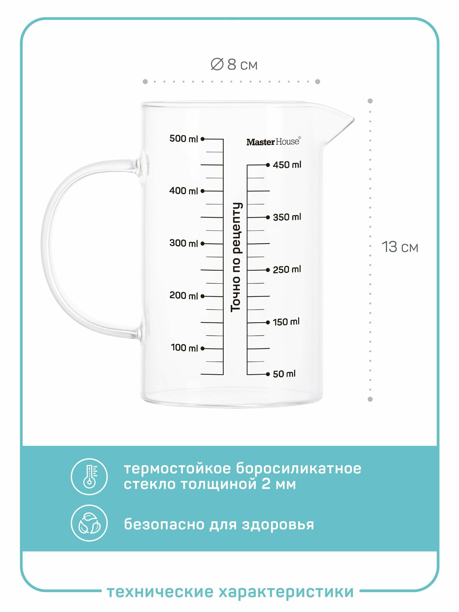 Купить Master House Мерный стакан стеклянный Генау 500 мл с носиком