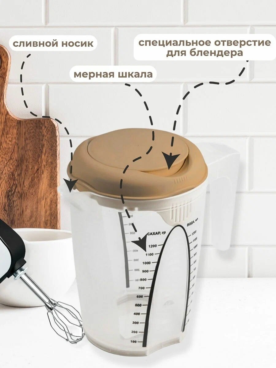 Мерный стакан пластиковый 1,5л стакан для блендера мерная емкость