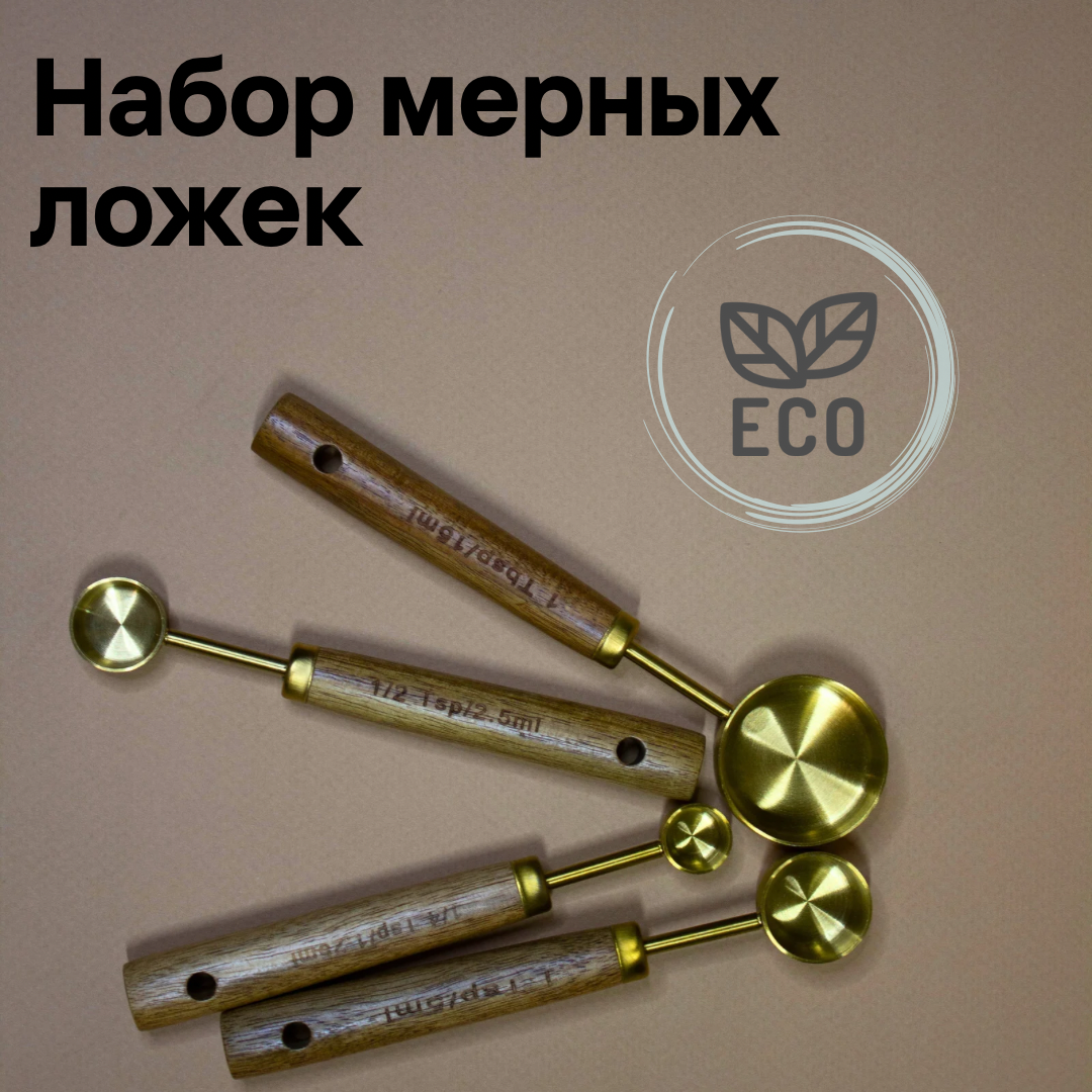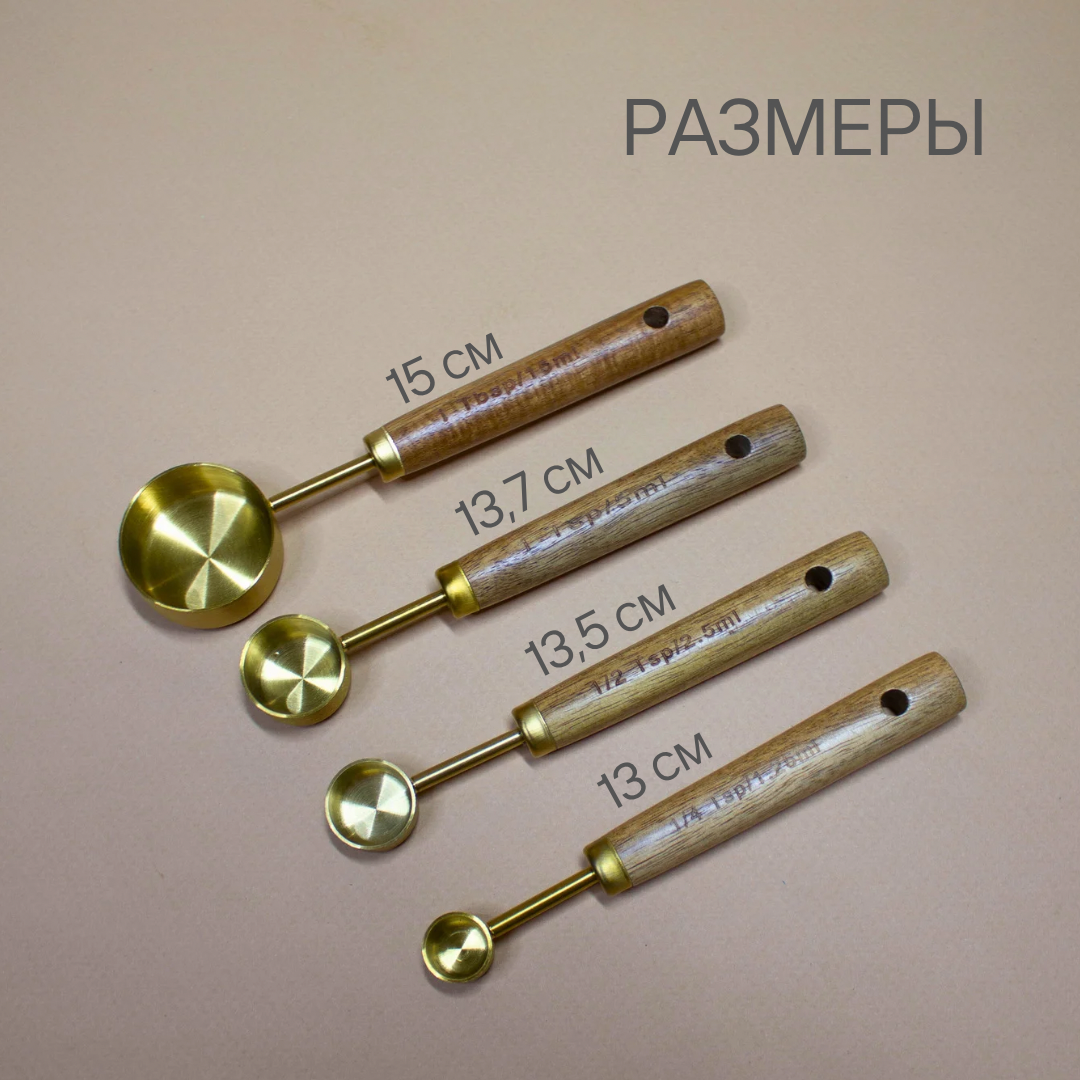 Набор маленьких мерных ложек с деревянной ручкой интересное: