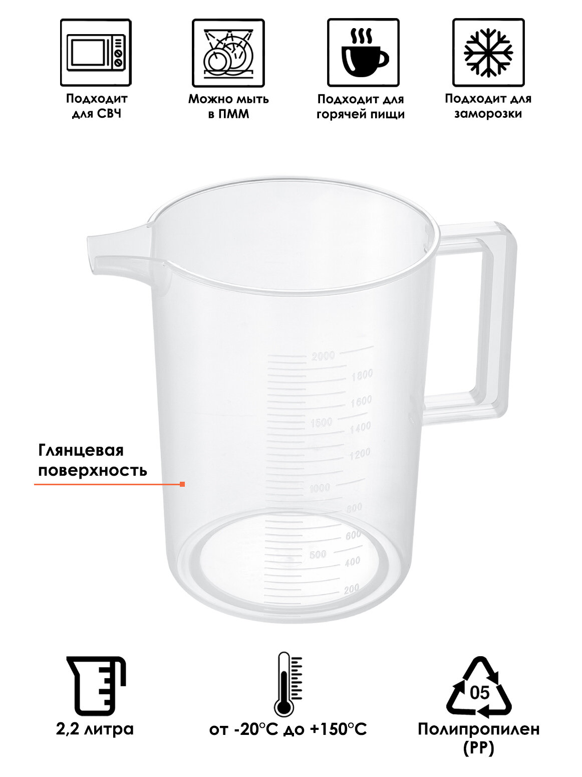 Кувшин мерный 2,2 л / Мерная емкость 21,3х14,4х19 см интересное:
