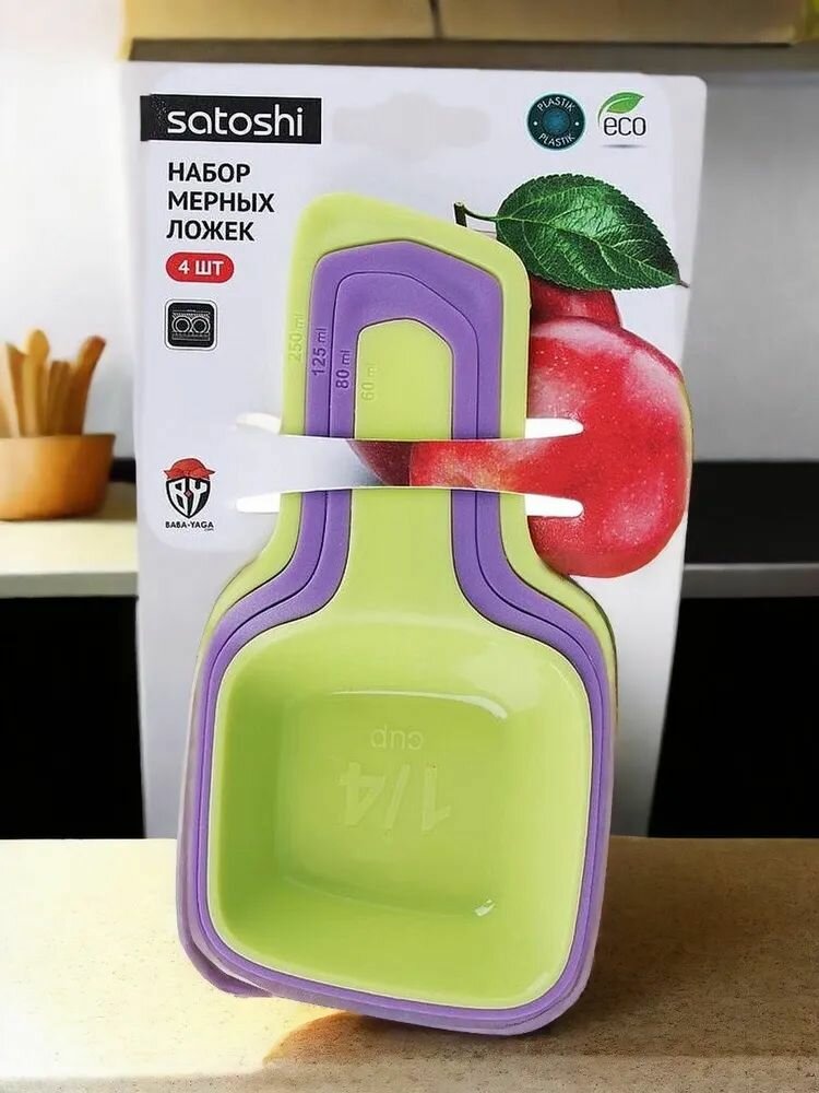 Набор мерных пластиковых ложек Satoshi, фиолетовые и зелёные мерные ложки, 4 штуки 19,5*11 см интересное: