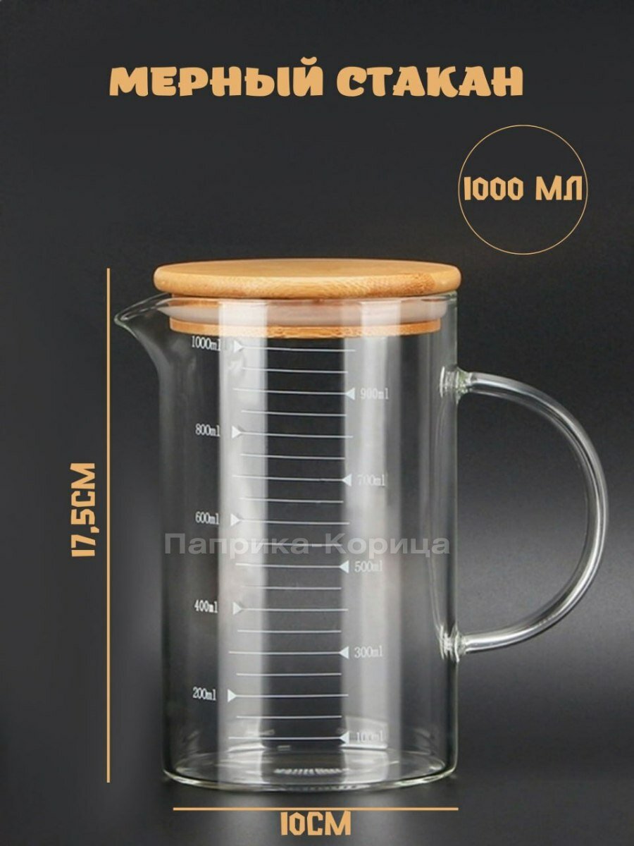 Мерный стакан стекло 1000мл с бамбуковой крышкой интересное: