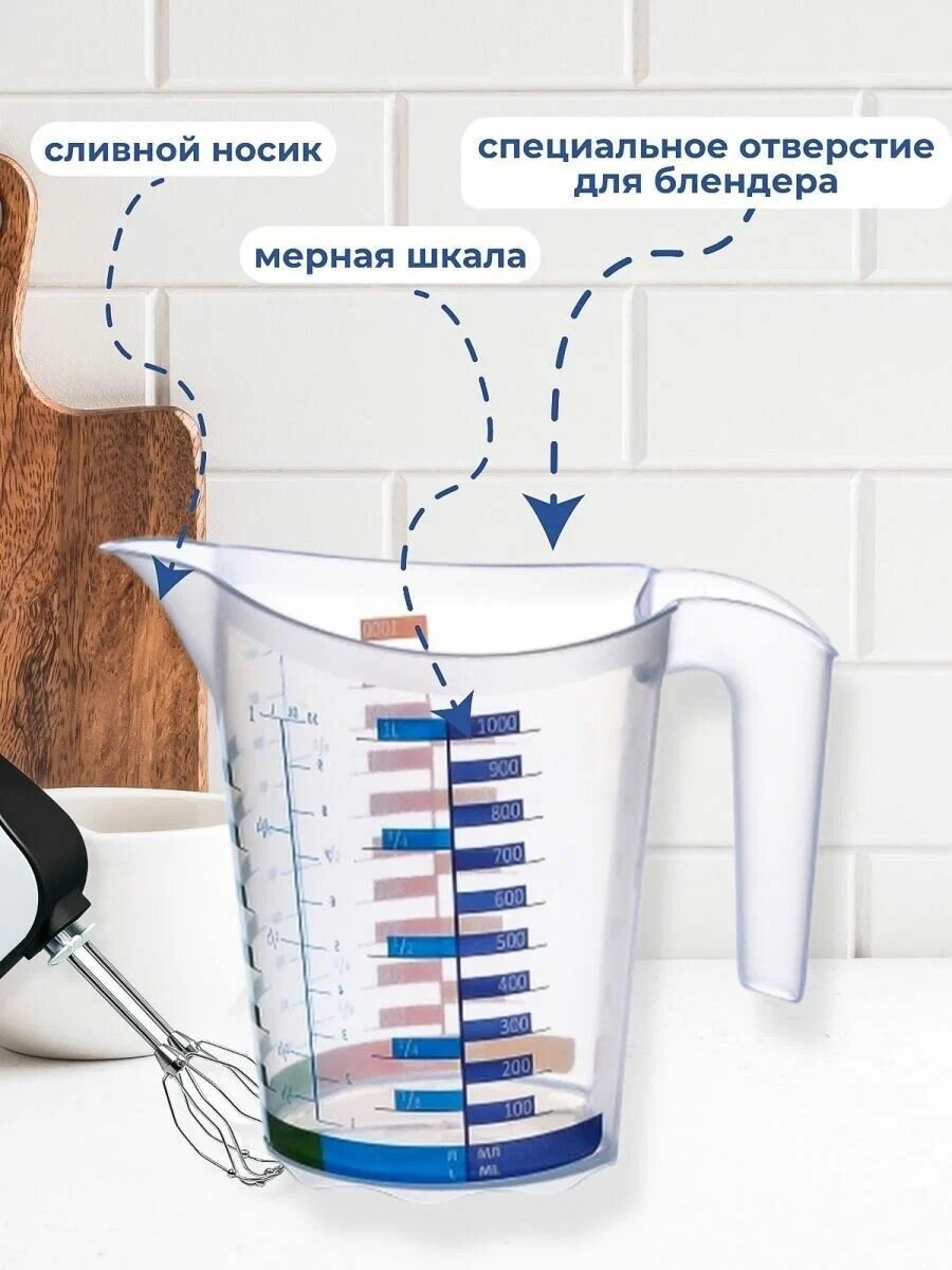 Мерный стакан elfplast "Домино" для кухни 1 л пластиковый, (прозрачный) 315 интересное: