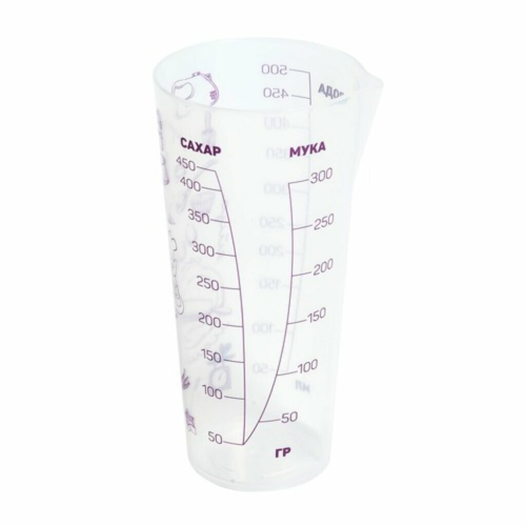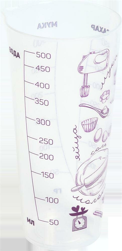 Стакан мерный Violet ПОВАРЕНОК 500мл, 1 штука, пластик, прозрачный интересное: