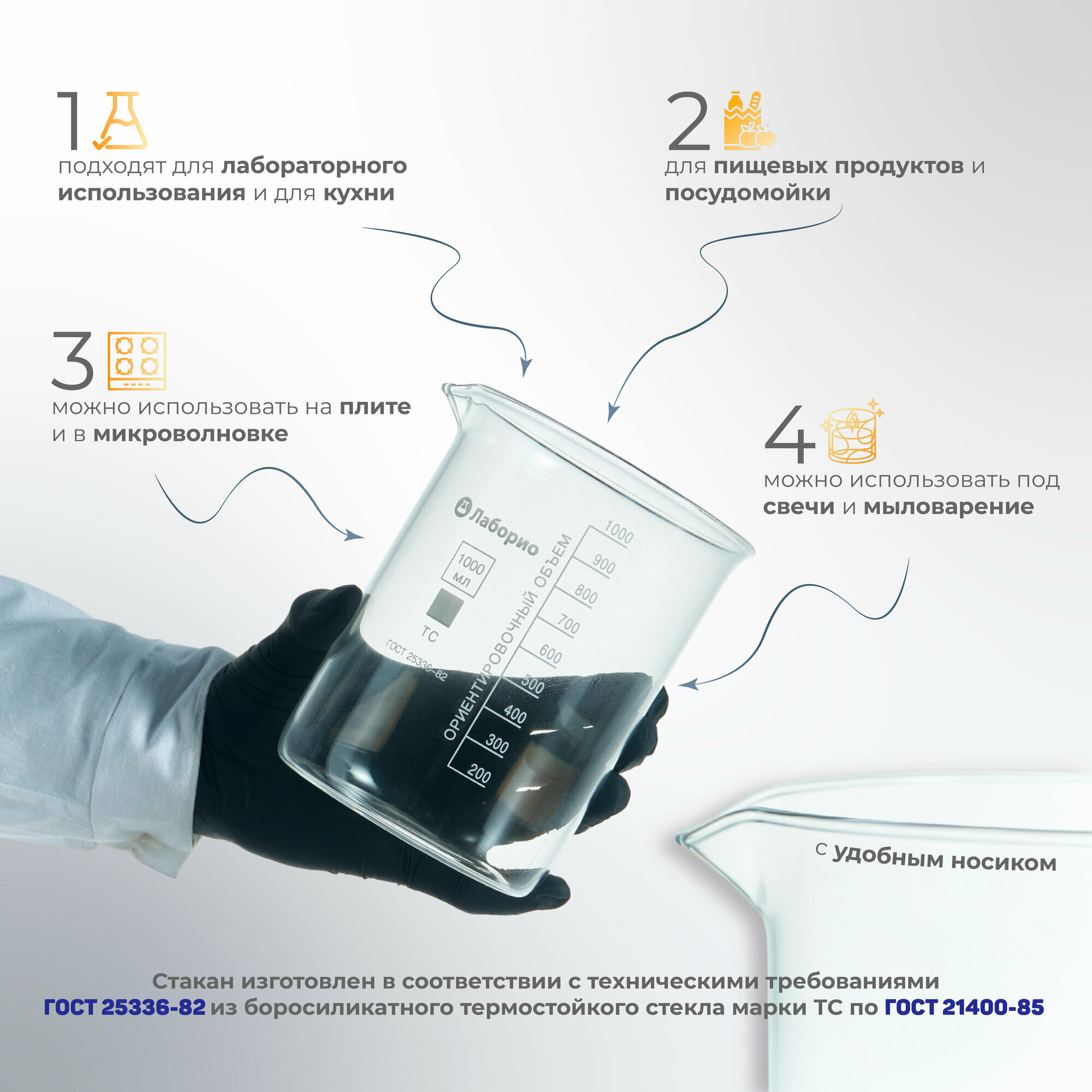 СохранитьСтакан лабораторный 1000 мл, 24 шт. (тип В, высокий с делениями и носиком, термостойкий) ТС В-1-1000 интересное: