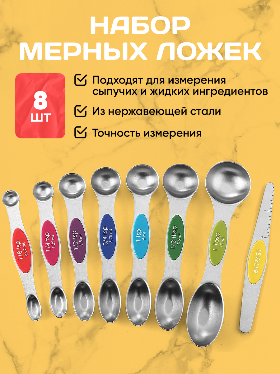 Мерные ложки набор для кухни 8 шт цветные интересное:
