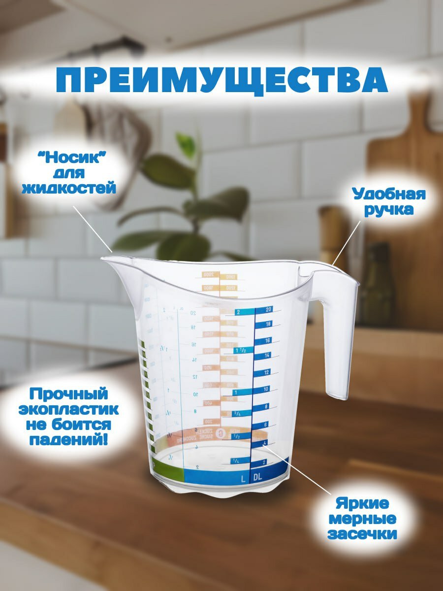 Кружка мерная Elfplast "Домино", бесцветная, пластик, 2000 мл интересное:
