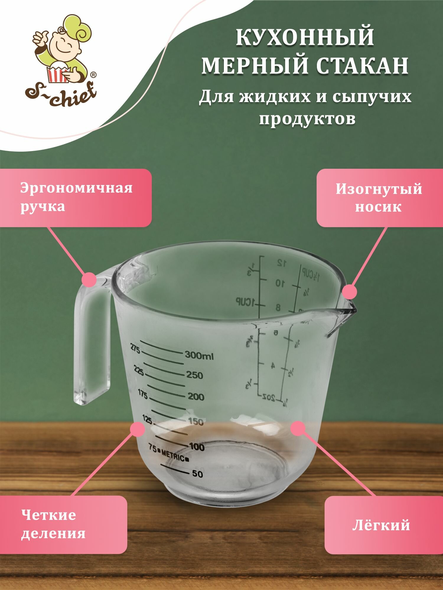Мерный стакан "S-CHIEF" SHF-0346 9x12 см 300 мл 1 шт интересное: