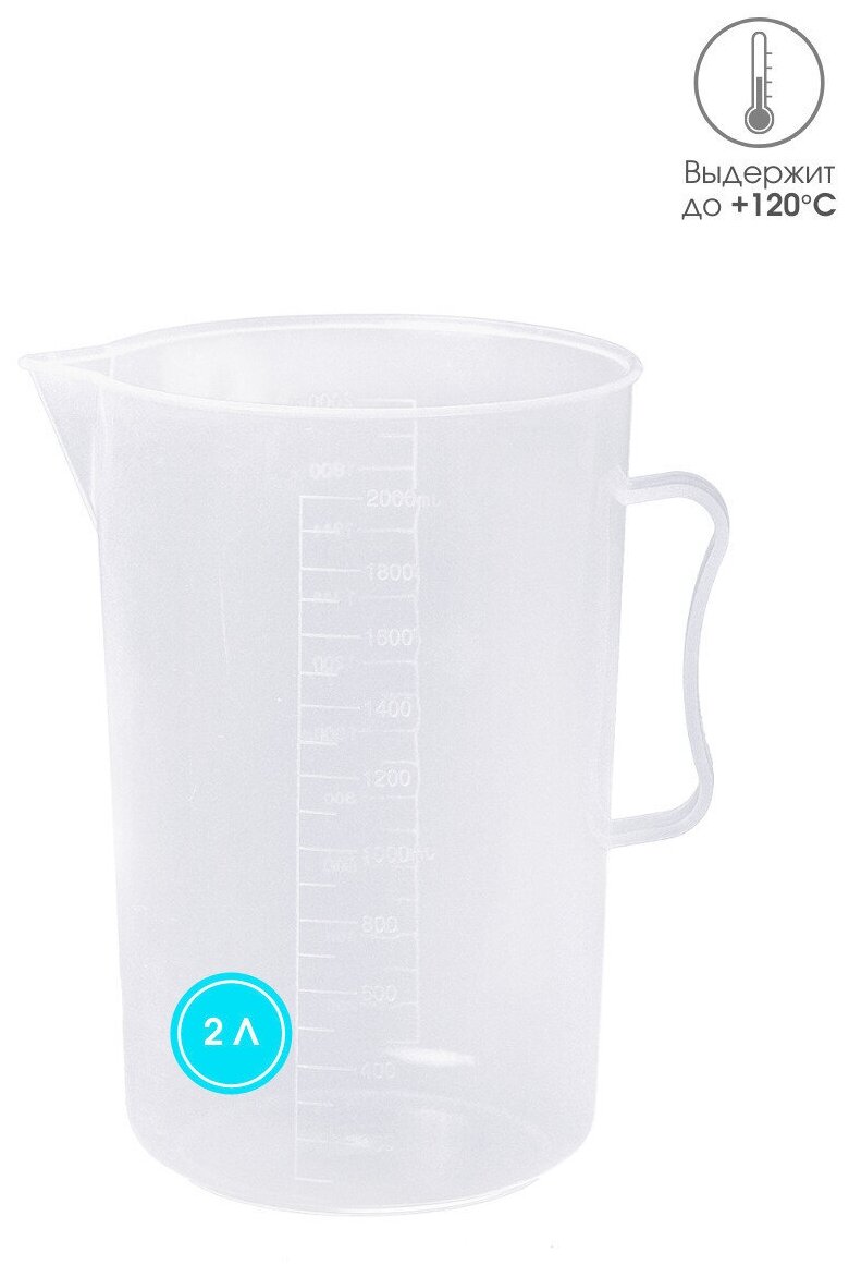 Купить Емкость мерная из полипропилена, 2 литра (2000мл) / Кружка мерная / Стакан мерный с ручкой / Мензурка пластиковая.