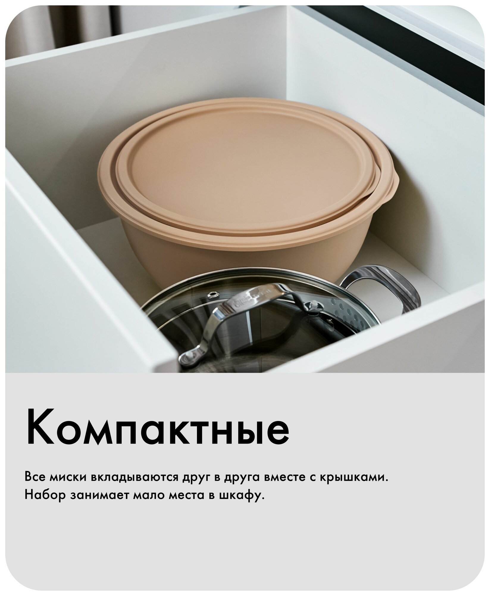 Миска, Kuchenland, 3/4,5 л, 2 шт, с крышкой, антискользящее дно, бежевая, Terra new
