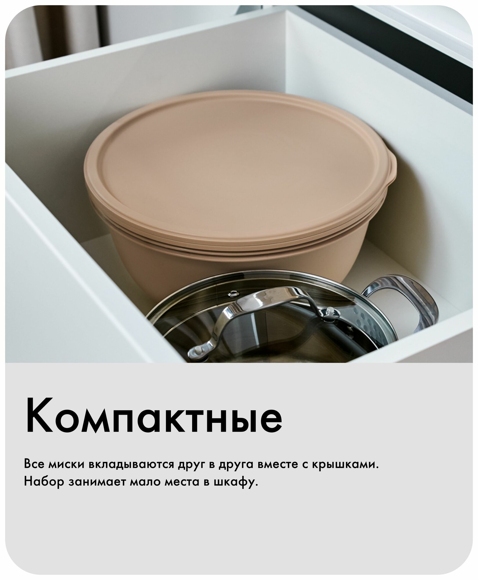 Миска, Kuchenland, 3/4,5 л, 2 шт, с крышкой, антискользящее дно, бежевая, Terra new