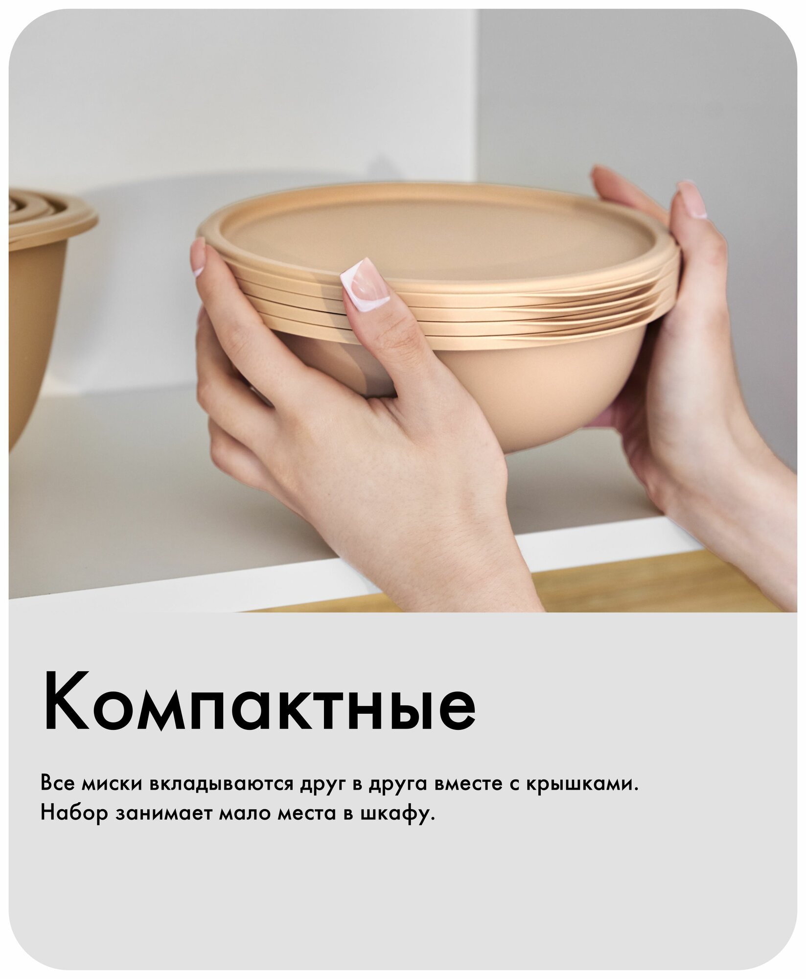 Набор мисок с крышками «Шарм №25», Альт-Пласт, 8шт, пластик, какао