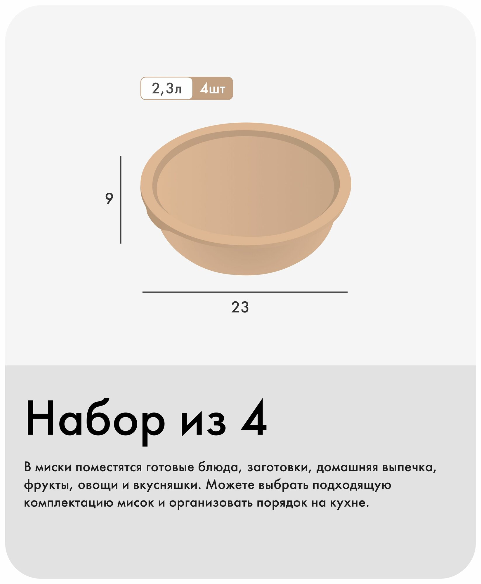 Набор мисок с крышками «Шарм №26», Альт-Пласт, 3,7л (4шт), пластик, какао