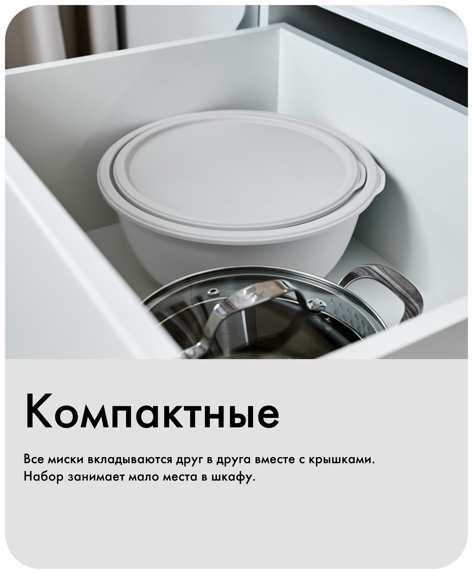Набор мисок с крышками «Шарм №11», Альт-Пласт, 5,6л (3шт), пластик, серый
