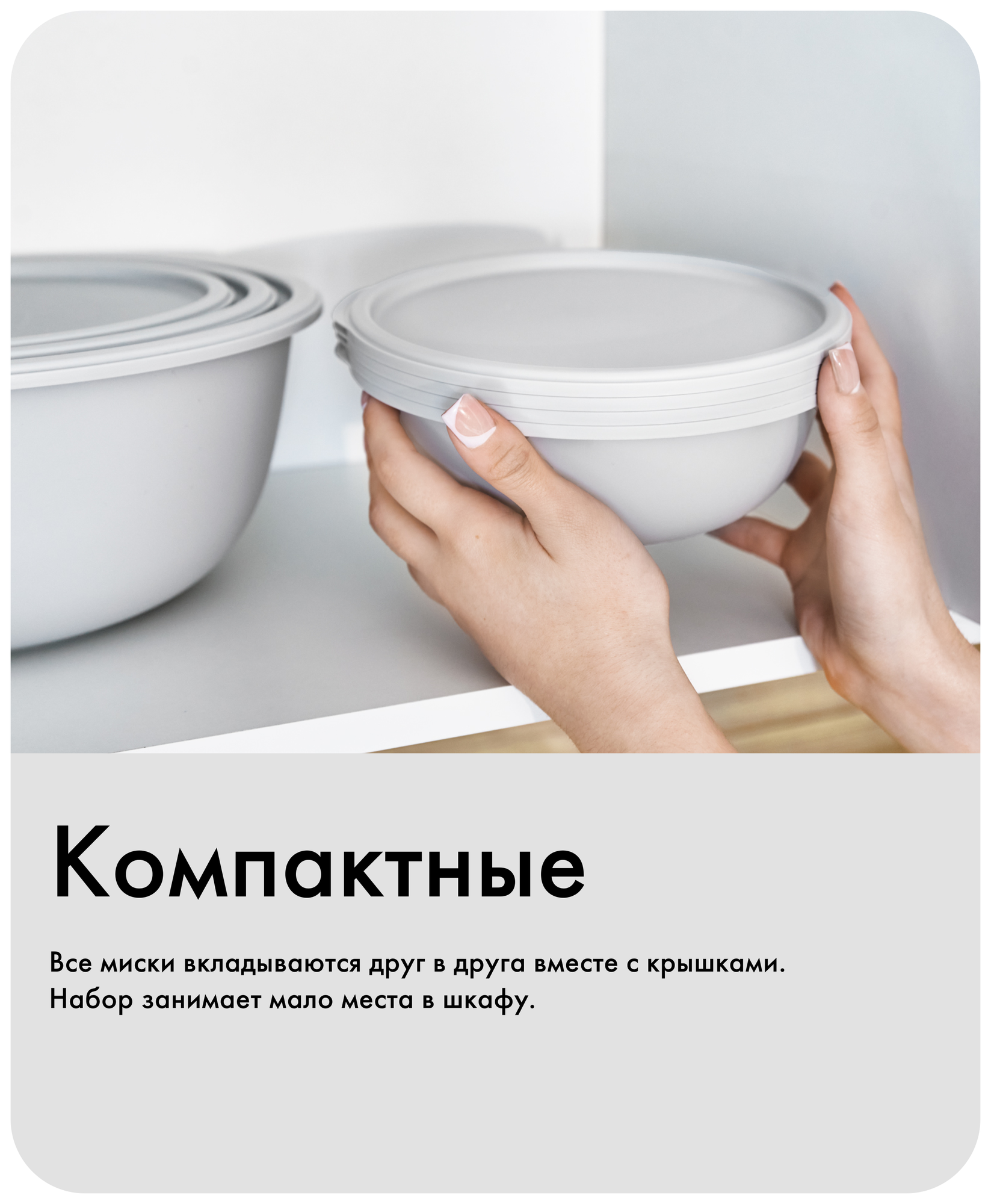 Набор мисок с крышками «Шарм №10», Альт-Пласт, 1,3л (4шт), пластик, серый