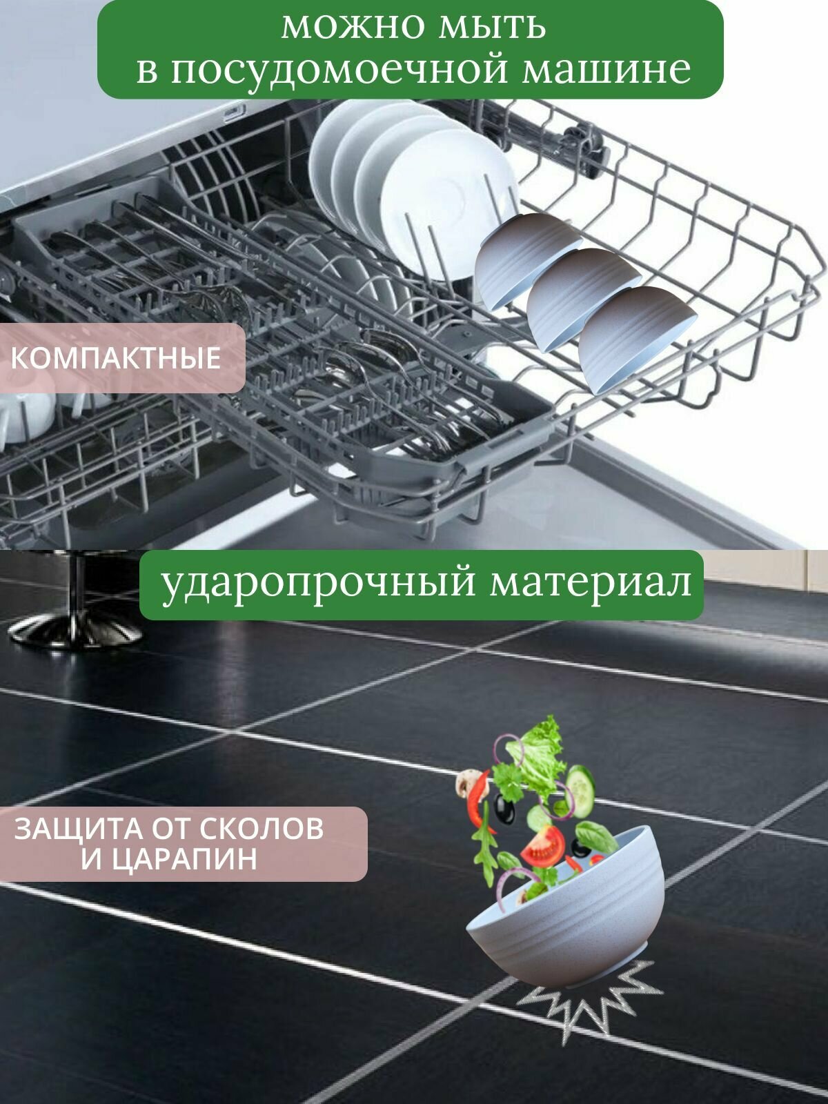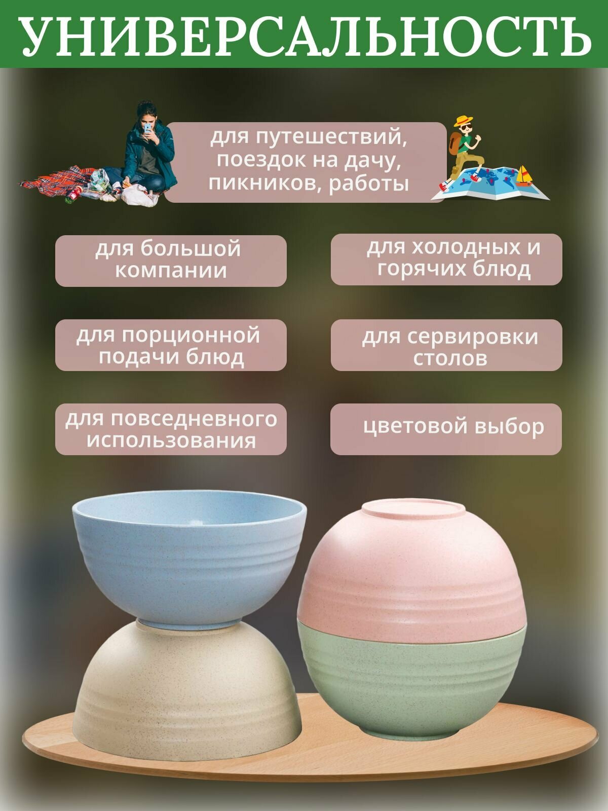 Набор мисок глубоких, салатники из пшеничной соломы 5шт.