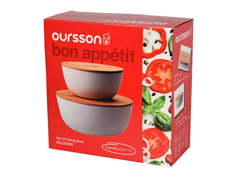 Купить Набор мисок Ourisson BS3392RB/IV, бамбуковые, с крышками, цвет слоновая кость
