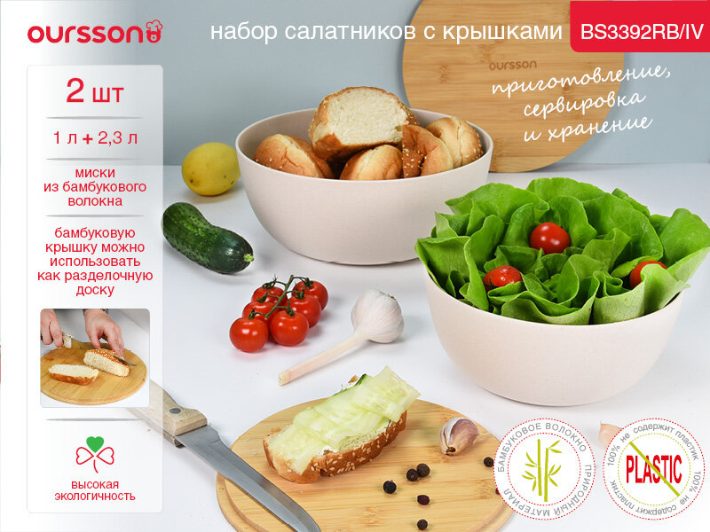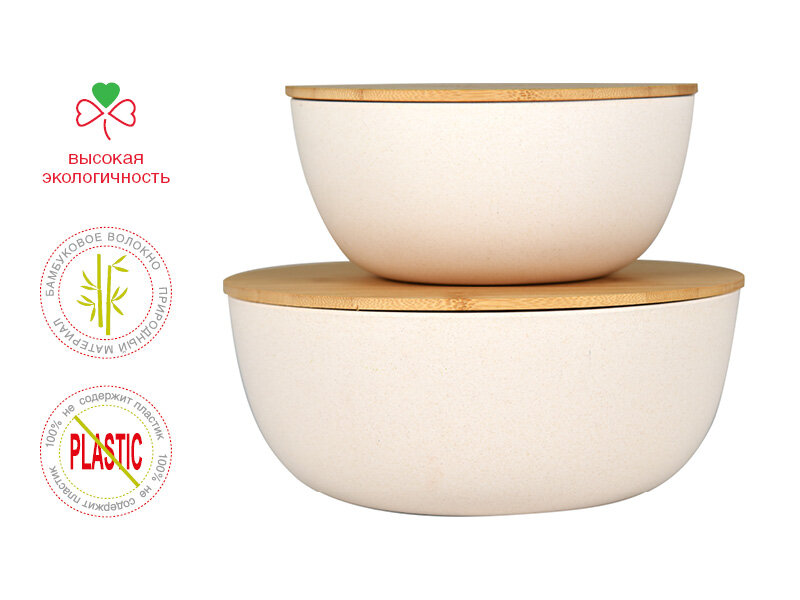 Набор мисок Ourisson BS3392RB/IV, бамбуковые, с крышками, цвет слоновая кость интересное: