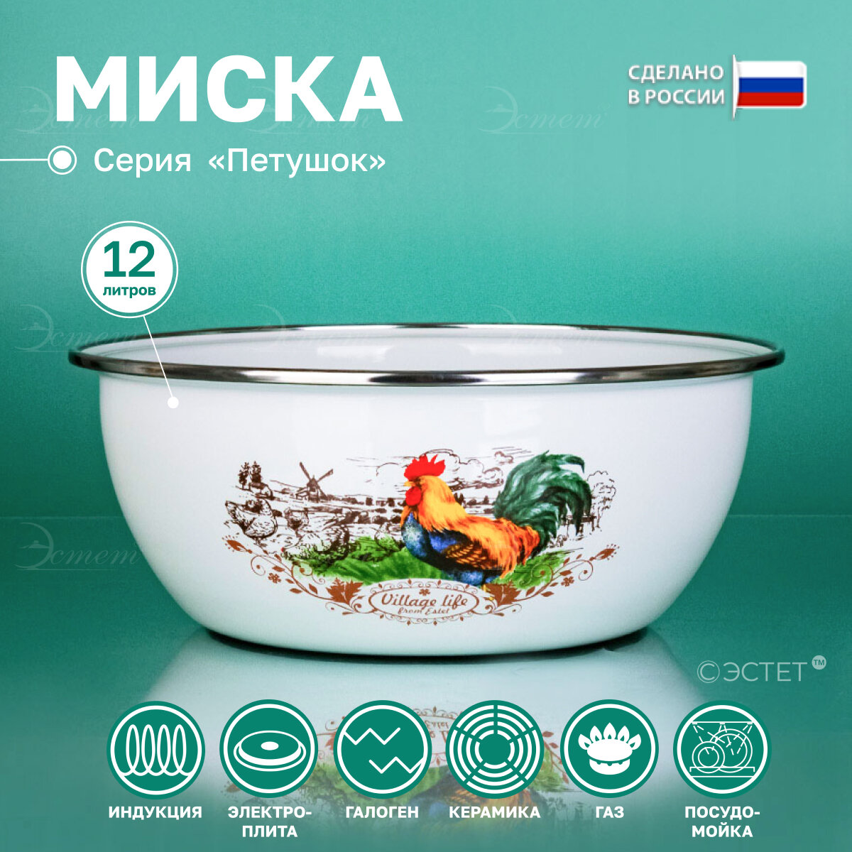 Миска эмалированная 2,5 л для всех видов плит "Петушок" интересное: