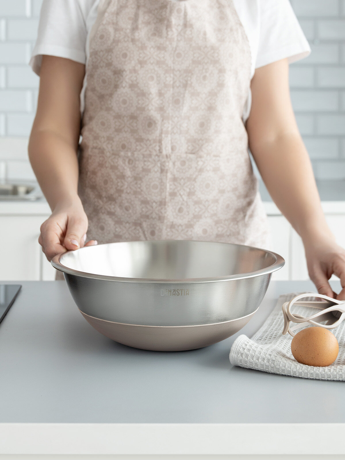 Купить Миска для смешивания продуктов DeNASTIA D28,8см, силиконовое дно, цвет бежевый