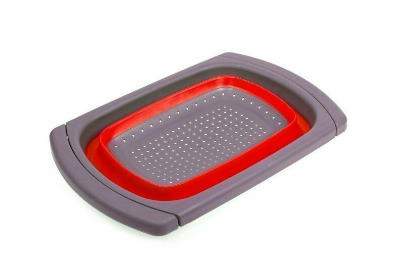 Купить Дуршлаг складной прямоугольный с телескопическими ручками, красный