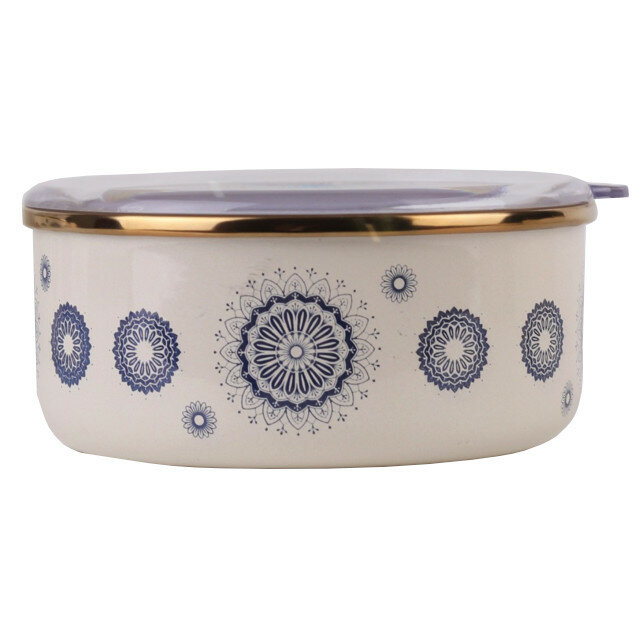Купить Миска эмалированная с крышкой, 14 см, 650 мл, Сияние, синий, Катюша