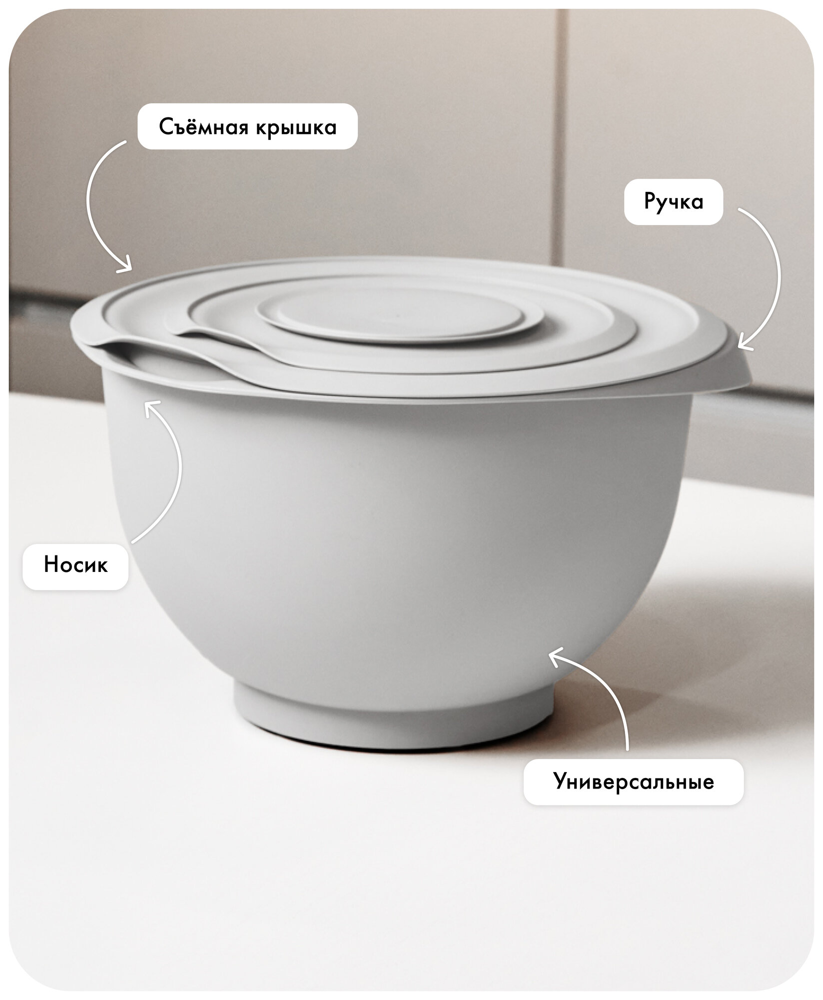 Набор мисок для взбивания «Кулинар», Альт-Пласт, пластик, 3шт, серый интересное: