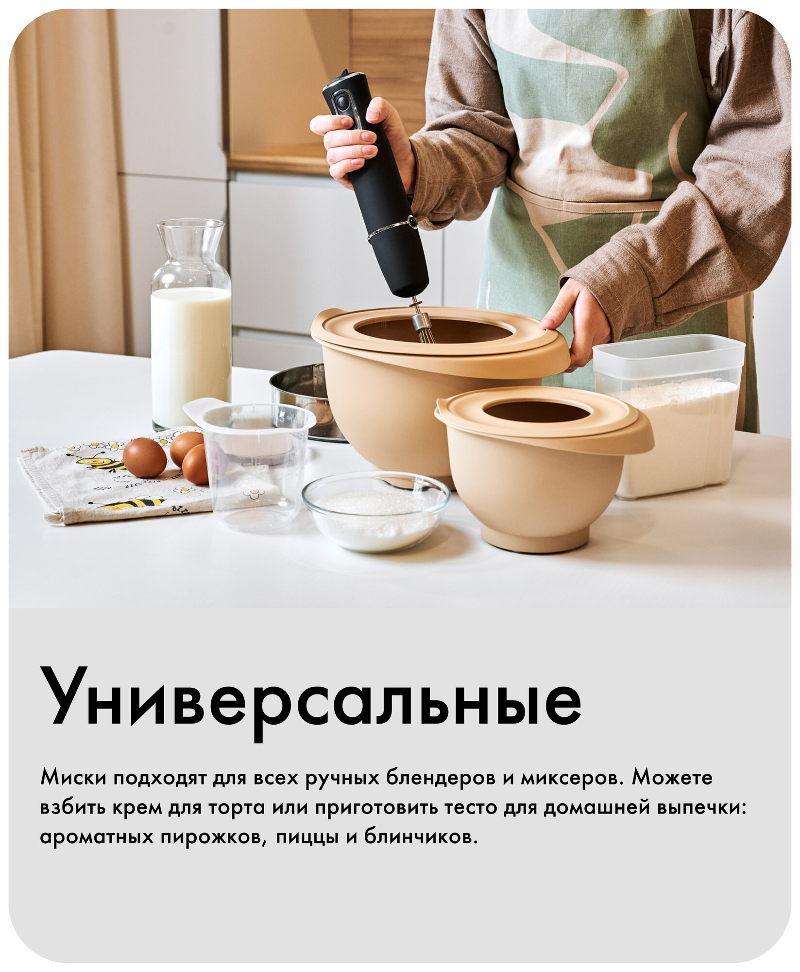 Миска, Kuchenland, 3/4,5 л, 2 шт, с крышкой, антискользящее дно, бежевая, Terra new