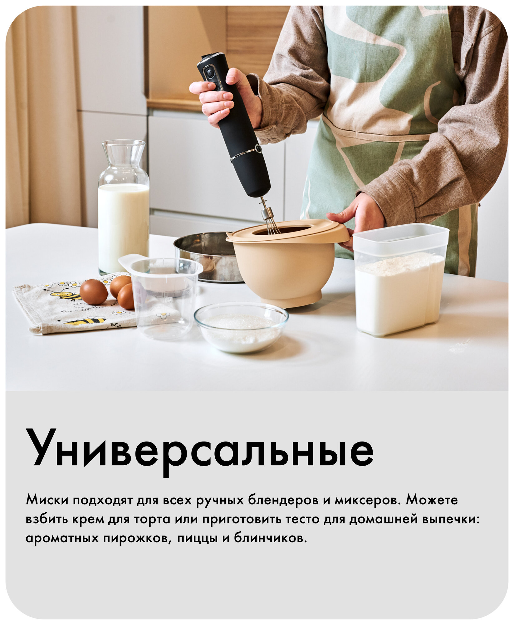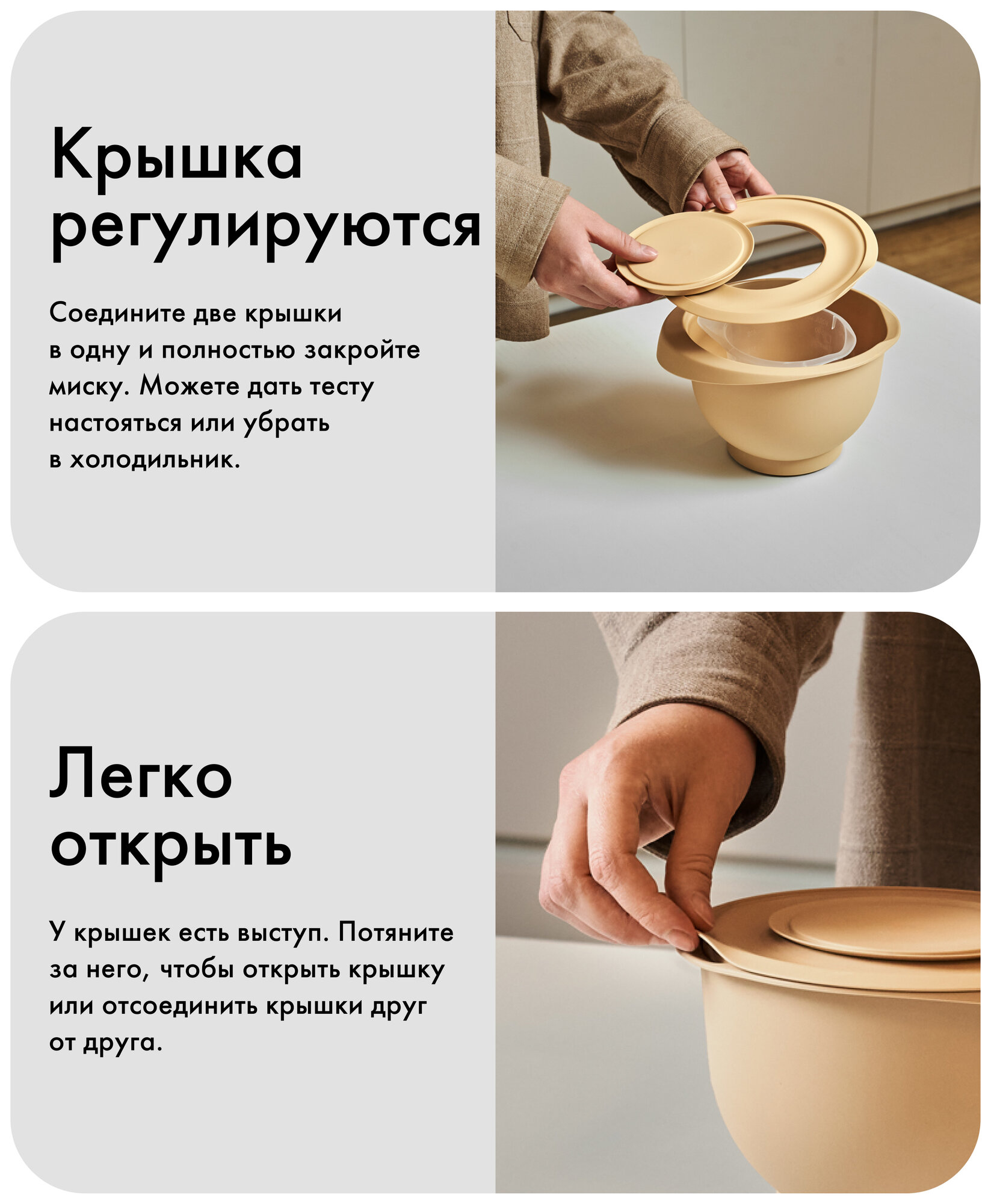 Миска, Kuchenland, 3/4,5 л, 2 шт, с крышкой, антискользящее дно, бежевая, Terra new