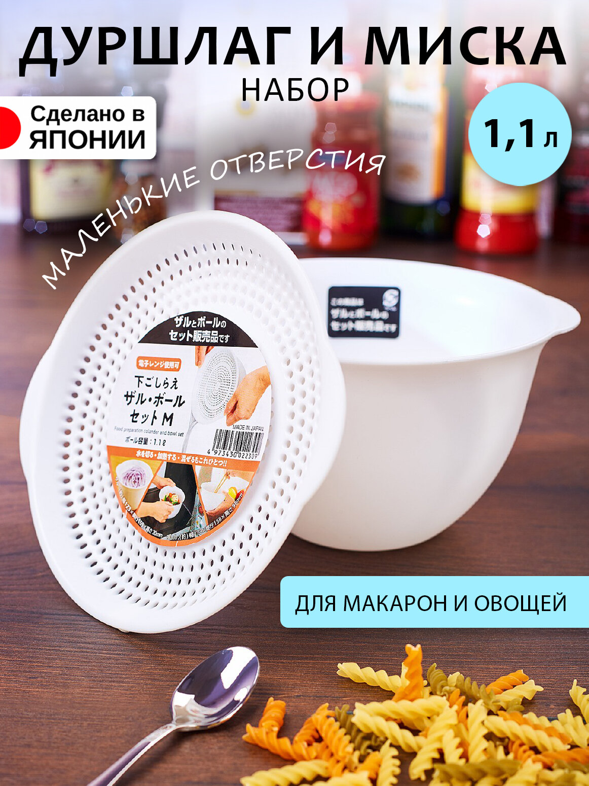 Миска для кухни 1,1 л и дуршлаг пластиковый набор интересное: